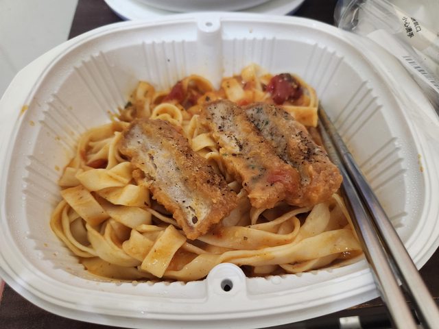 【商品名稱/價格】:伏特加醬豬排生義大利寬扁麵/99元(友善時光70元)