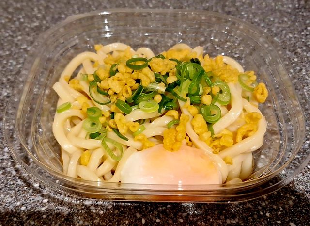 烏龍麵條非常的Q 而且所附的蔥花跟炸屑的量 台灣小七根本不會有給這麼多 溫泉蛋特別