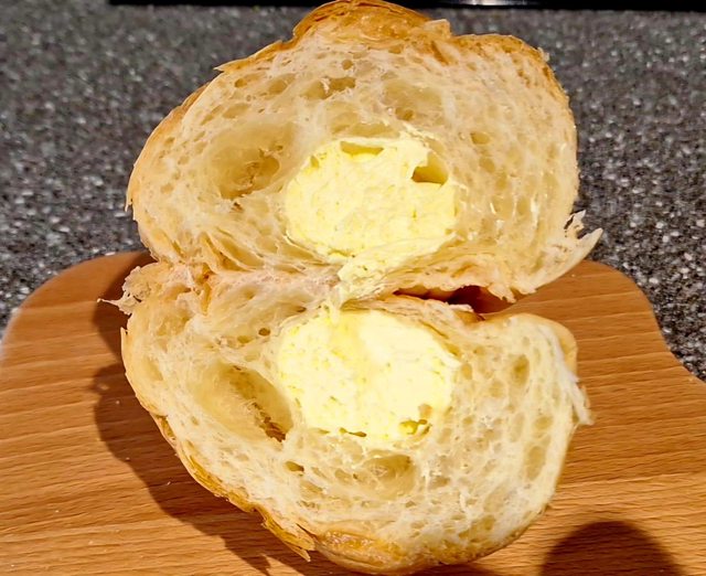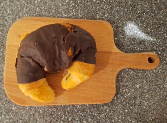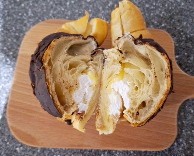 以閃電泡芙為設計靈感的可頌麵包 表面是巧克力 中間有卡士達跟鮮奶油
