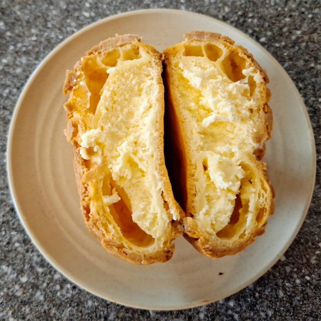 結合菠蘿麵包跟泡芙 皮吃起來就是菠蘿麵包口感 奶油也使用了鹹口味奶油