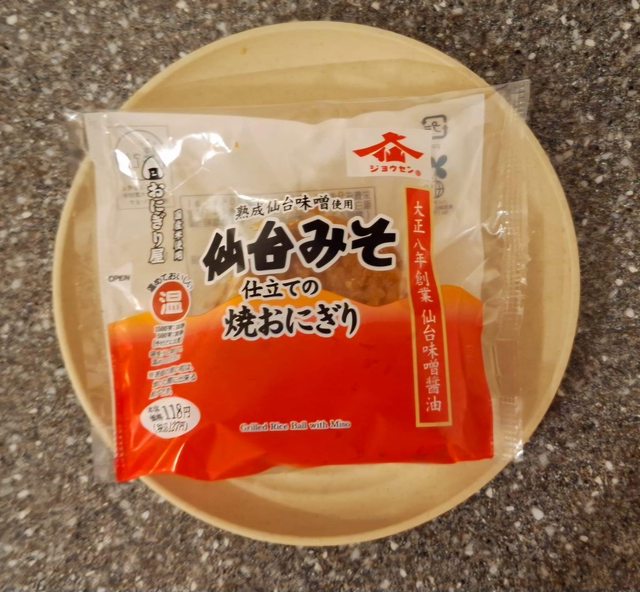 好像是日本東北限定的產品 抹上仙台味噌的烤飯糰 日本烤飯糰內餡大多沒有包料 跟台
