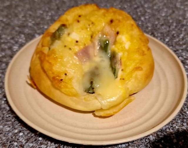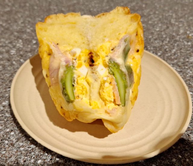 這次買了這個 麵包裡面包著烤蘆筍跟培根 還有全熟的雞蛋 基本已經是麵包店等級的麵包了