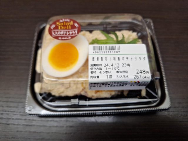馬鈴薯沙拉裡面加了柴魚提味 還有半顆溏心蛋 針對大人設計的馬鈴薯沙拉