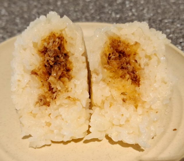 用日式高湯煮的炊飯製成飯糰 中間包著柴魚 很有日本口味的飯糰