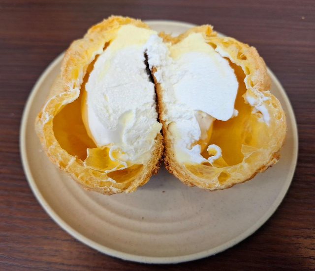 泡芙皮使用了酥皮 裡面是牛奶味濃郁的鮮奶油餡