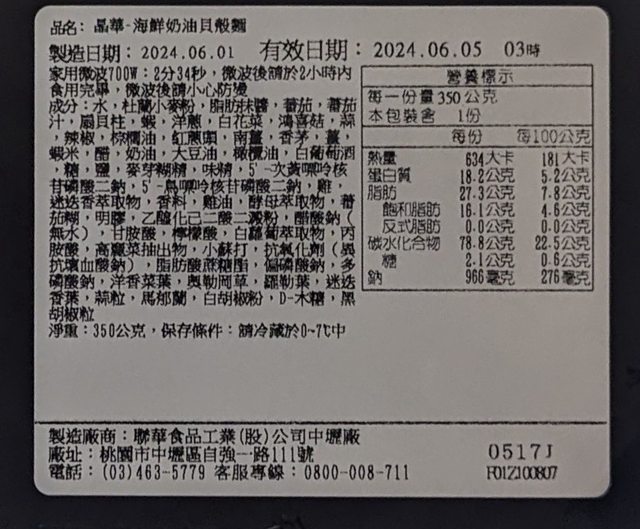 【商品名稱/價格】:海鮮奶油貝殼麵/ i珍食價90$