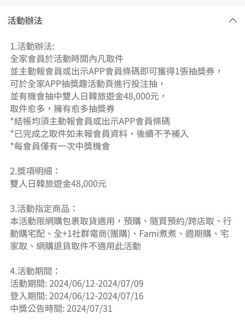 全家的取件抽獎活動