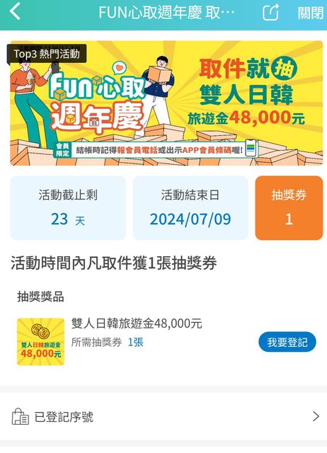 標題[情報] 全家 取件抽旅遊金