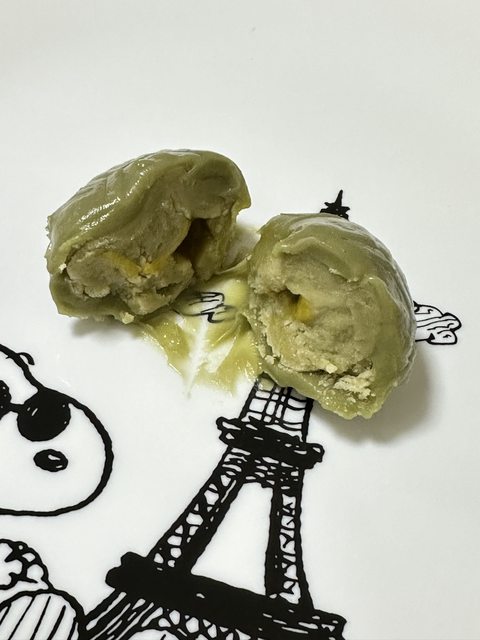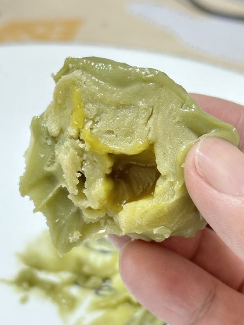 內餡的綠豆沙甜度很低,比隔壁的白豆沙低