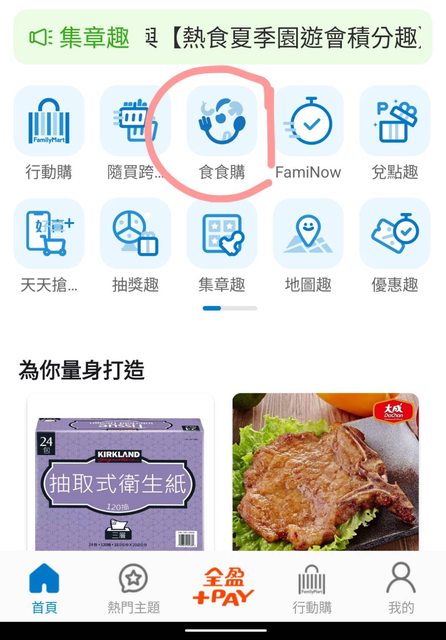 要從全家app進入食食購下單(應該就是以前的煮煮)