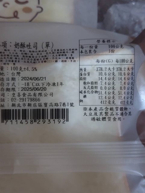【商品名稱/價格】: 全家 食胖胖 奶酥吐司(2入)/特價$45
