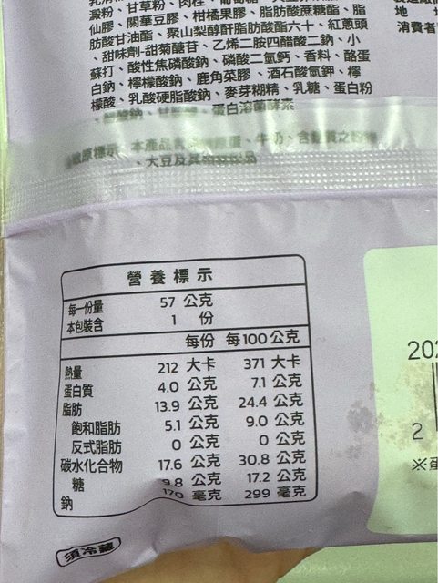 【規格/內容物/熱量】:57g / 212 大卡