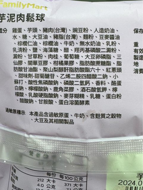 標題[商品] 全家 芋泥肉鬆球