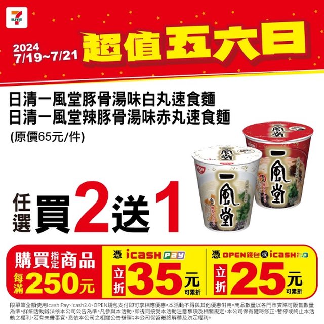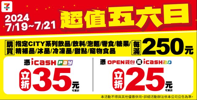 標題[情報] 7-11超值五六日7/19-21 icashPay 折35元