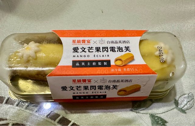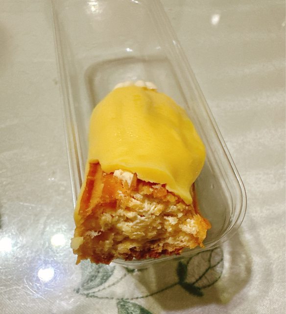 上方有芒果巧克力包覆泡芙皮但芒果味不算重同樣也不太甜