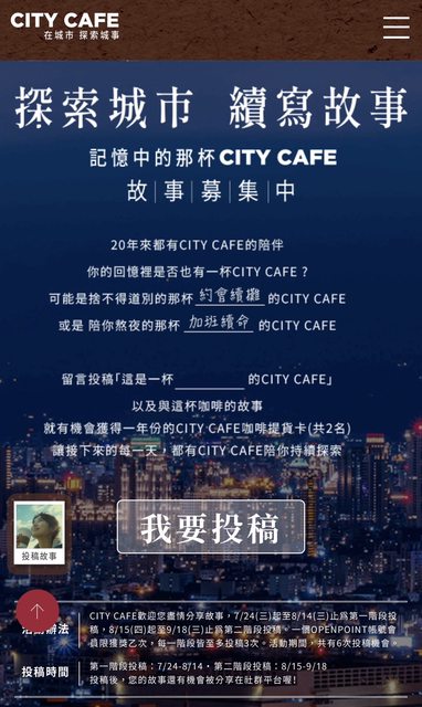在活動官網投稿跟CITY CAFE相關的故事