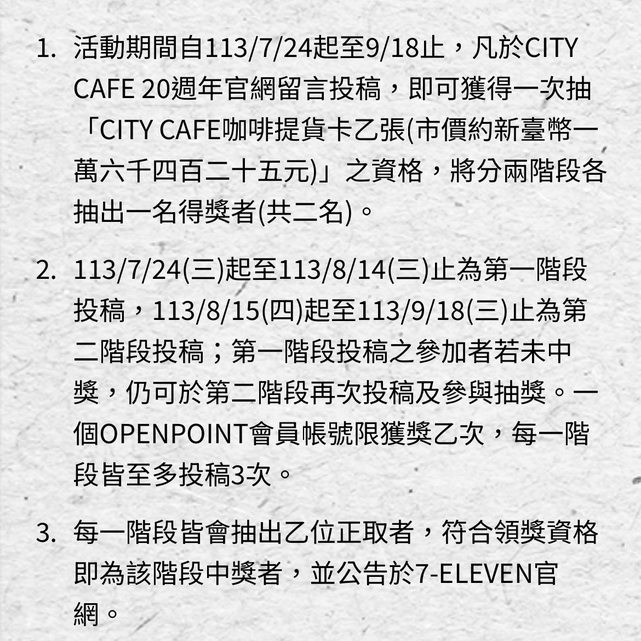 標題[情報] CITY CAFE 20週年投稿抽獎活動