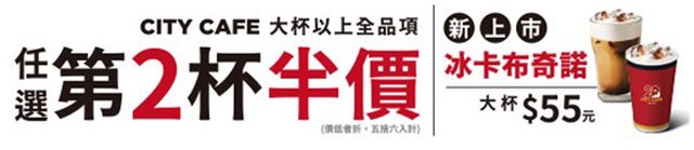 7/24-8/6 CITY CAFE大杯以上第二杯半價