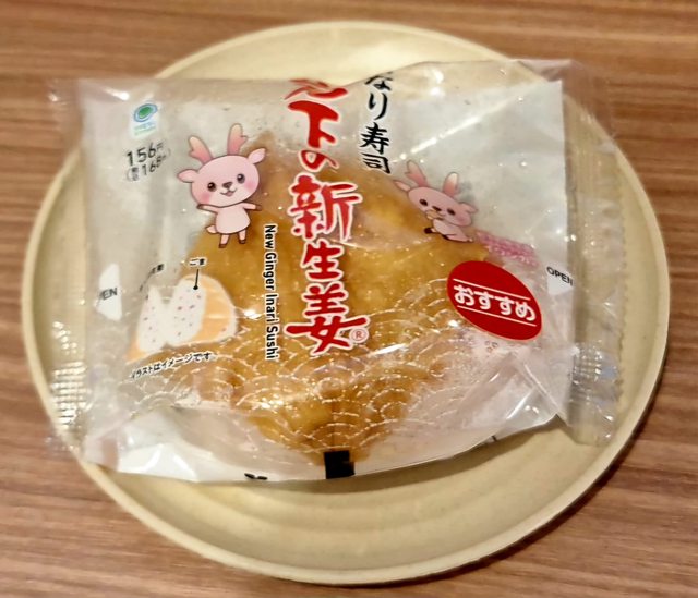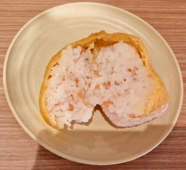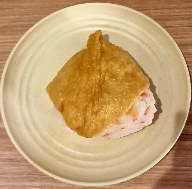 甜甜的紅薑碎塊拌在醋飯裡面的豆皮飯糰 算是還蠻開胃的