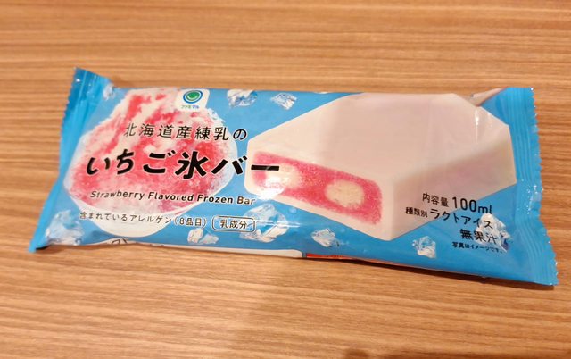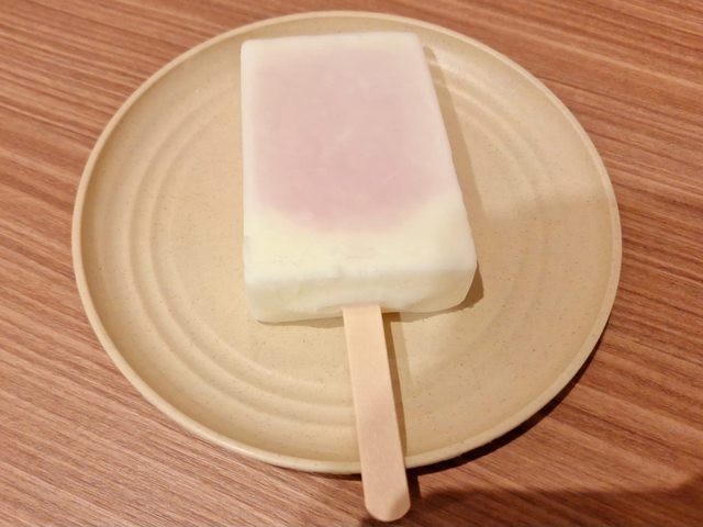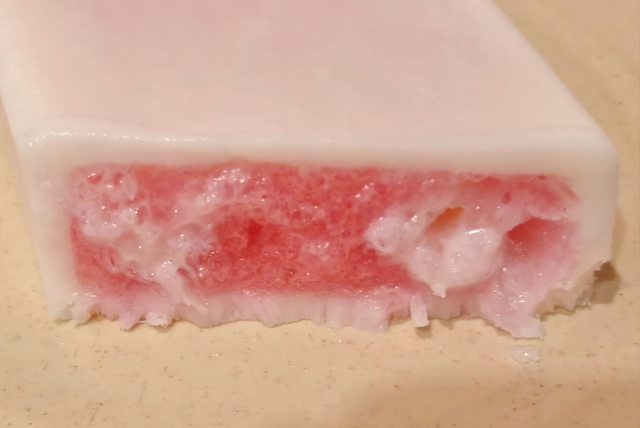 外層是煉乳口味的冰棒 中間是草莓醬口味的刨冰