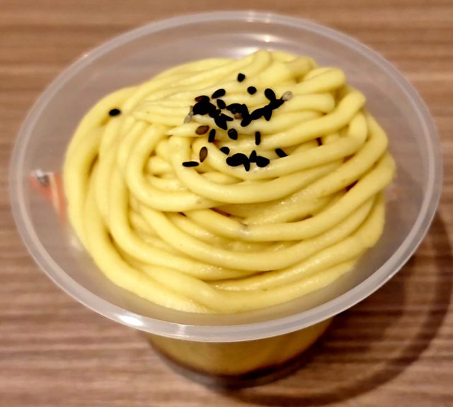 最上層是地瓜口味的蒙布朗 底層是布丁 還有不少焦糖醬喔