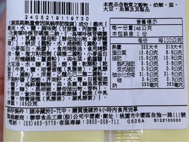 【規格/內容物/熱量】: