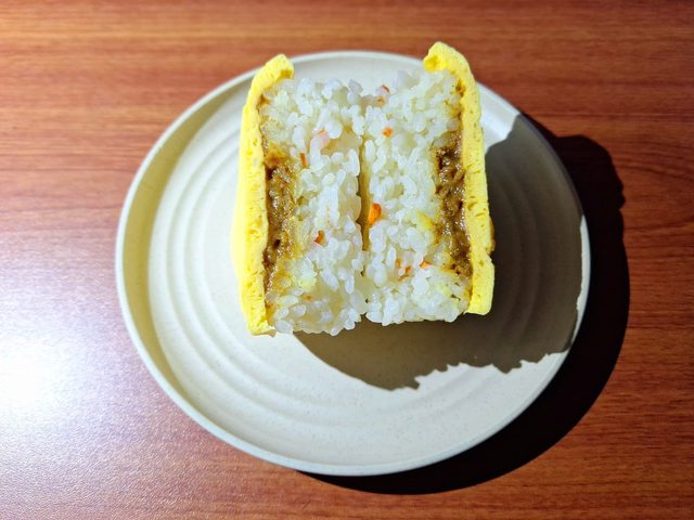 表層是鬆軟的蛋包 抹上味道比較重的咖哩醬 米飯則是日式拌飯 不是咖哩炒飯之類