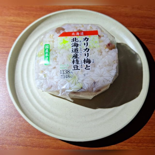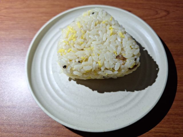 切碎的脆梅跟毛豆的拌飯飯糰 有點微酸還蠻好吃
