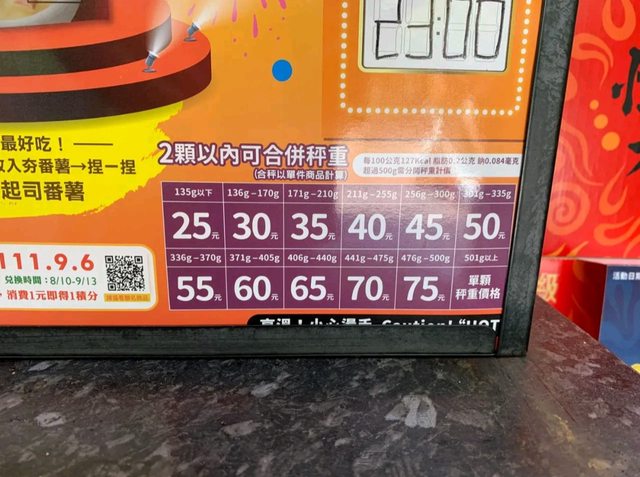 : 想問我拿了兩條大地瓜一起秤,因為兩條都蠻大條的,所以超出最高價75元,指針繞了一