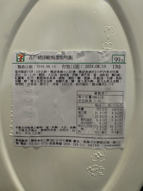 【商品名稱/價格】:香炸豬排歐姆蛋咖哩飯 99