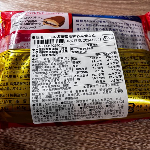 【商品名稱/價格】:日本烤布蕾風味舒芙蕾夾心/65元
