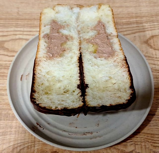 外表沾了半顆麵包的巧克力 有點像連鎖甜甜圈部分商品那樣