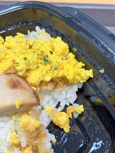 蛋很甜,蛋底下的白飯有一層醬,醬也是甜的