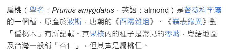 → OrcDaGG: almond叫成杏仁就是誤用 他原本就不是杏仁 08/28 19:50