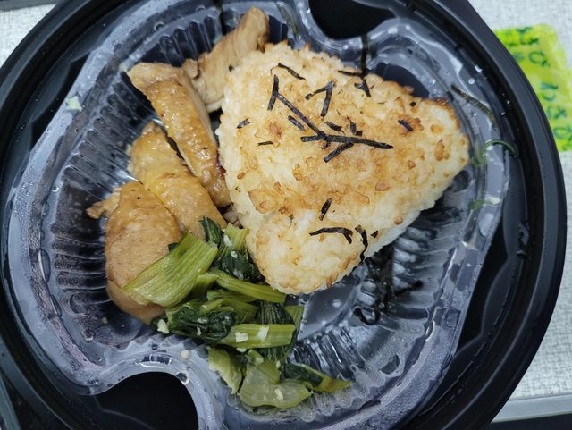 純看賣相還行,雞肉吃起來意外地很好吃,飯糰不考慮口感的話有些微碳烤香,配雞肉不錯