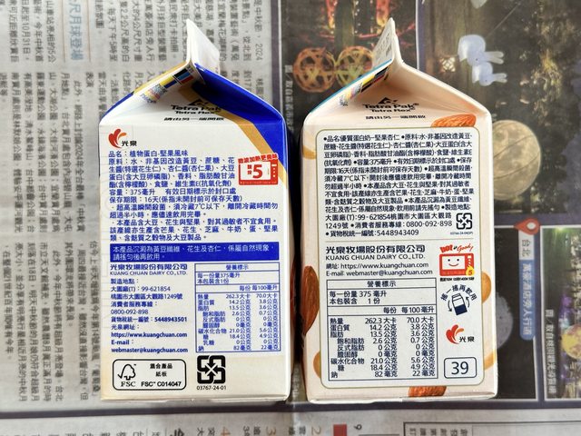糖、蛋白質含量和光泉原味鮮豆漿差不多