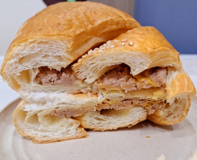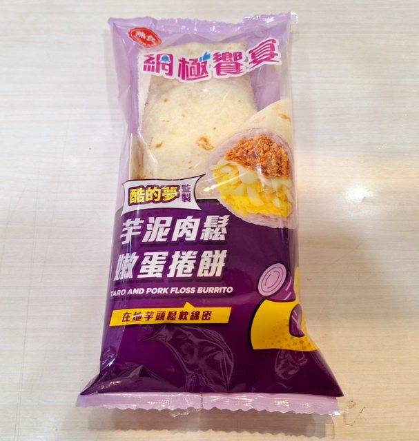 首先分享的是這款「芋泥肉鬆嫩蛋捲餅」