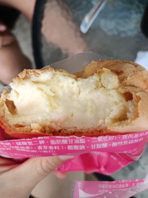 第一口咬下去,馬上就吃到內餡了,皮是普通沒味道軟軟的那種泡芙皮,單吃沒什麼意思