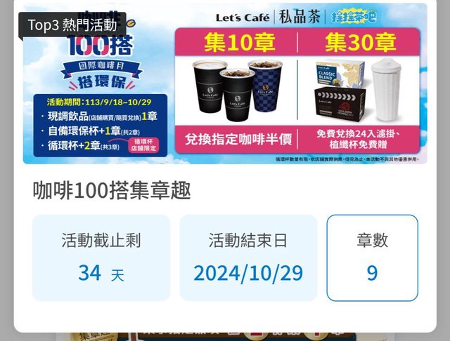 順帶一提現在有咖啡100搭的集章活動