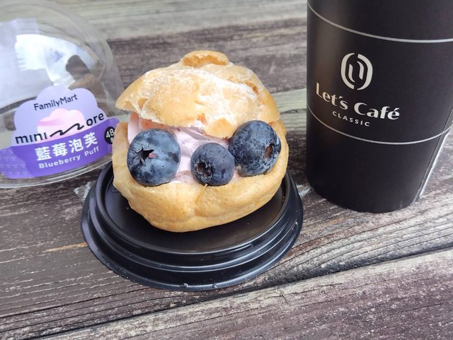 標題[商品]全家 藍莓泡芙 熱卡布奇諾