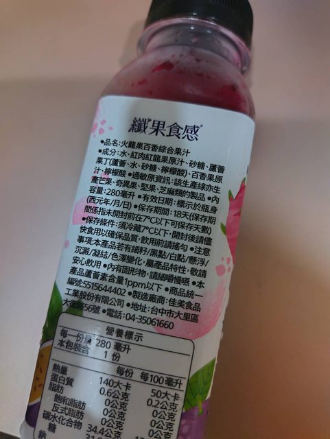 【商品名稱/價格】:7-11 火龍果百香果汁/$45