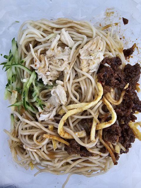 很甜中和肉醬的鹹,還有小黃瓜絲與雞絲口感不至於過於單調