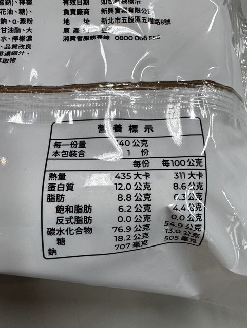 【規格/內容物/熱量】:每份140克/435大卡