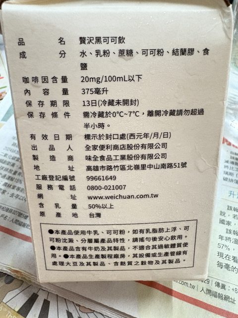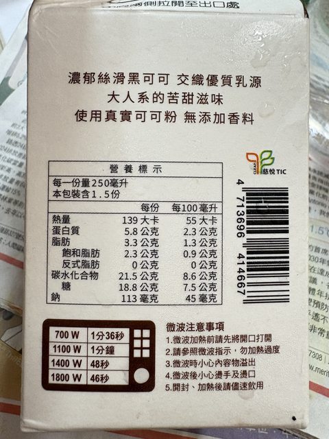 新版糖含量28.2,喝起來不是很甜,巧克力牛奶的味道很香醇