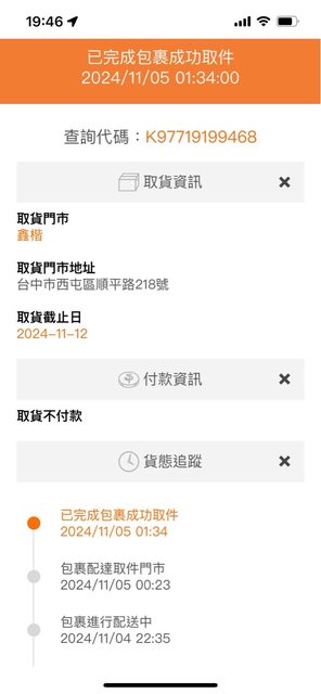 → voyagesam: 凌晨到貨,領錯的那位過一小時多馬上取件,也太勤勞 11/07 19:31