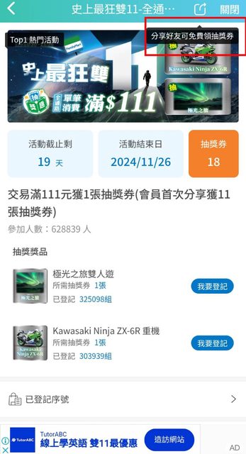分享者可獲得11張抽獎券