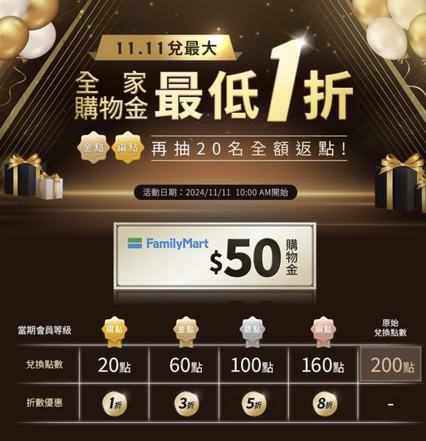 【活動名稱】雙11兌最大!最低1折換超商購物金