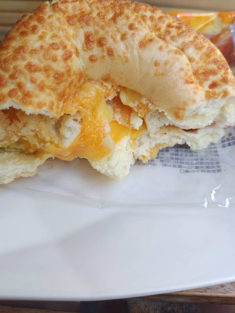 微波後的起司真的很香~麵包體是很Q、有嚼勁的那種