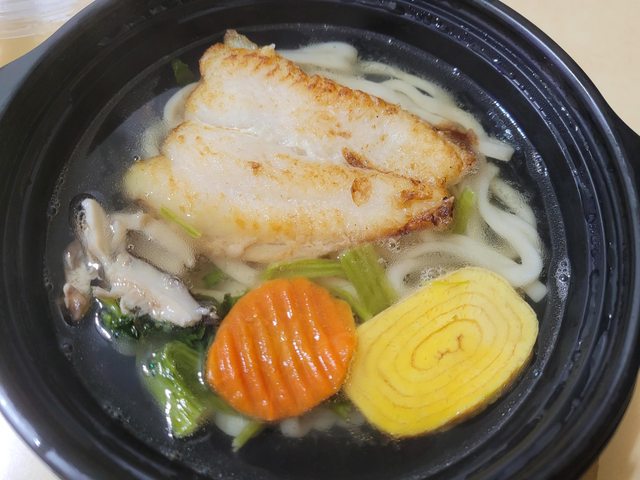 魚排無腥味口感不會過於鬆散、麵體加熱後還保有Q度