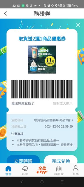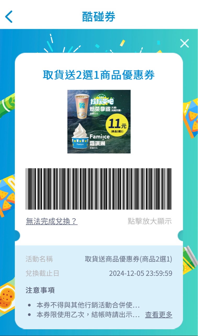 標題贈即期全家霜淇淋11元商品優惠券